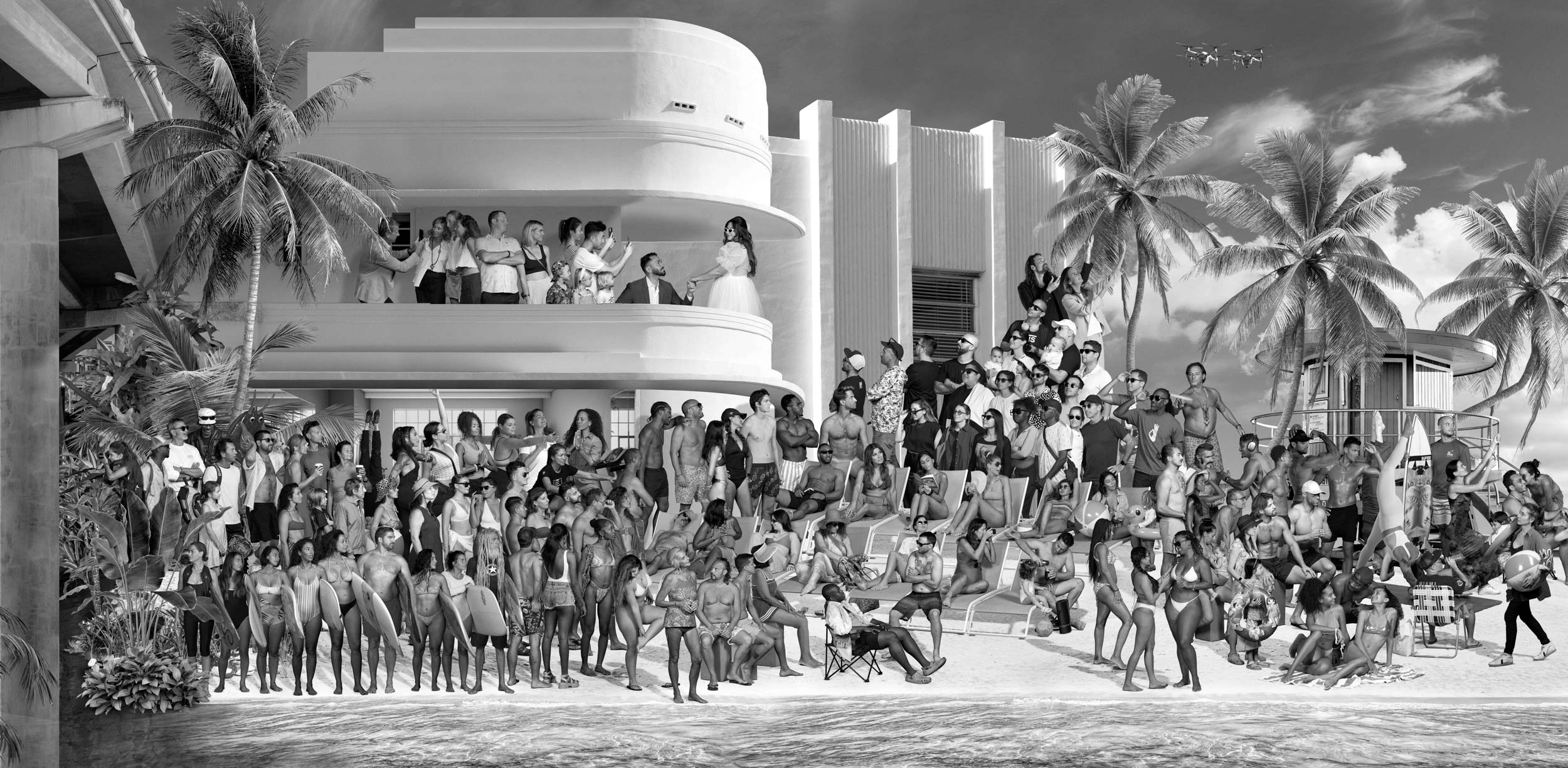Cette installation s'inspire des principes participatifs d'Inside Out, un projet artistique mondial créé par JR qui donne aux communautés le pouvoir de créer leurs propres installations d'art public composées de portraits noir et blanc à grande échelle. Faisant écho à cet esprit, cette œuvre poursuit à la fois l'héritage d'Inside Out et étend l'expérience des The Chronicles of Miami. L'expression individuelle, la participation communautaire, l'exploration et l'émerveillement, tous des principes fondamentaux du travail de JR, trouvent une résonance supplémentaire dans The Machine Behind the Art, l'installation immersive la plus significative de l'artiste à ce jour.